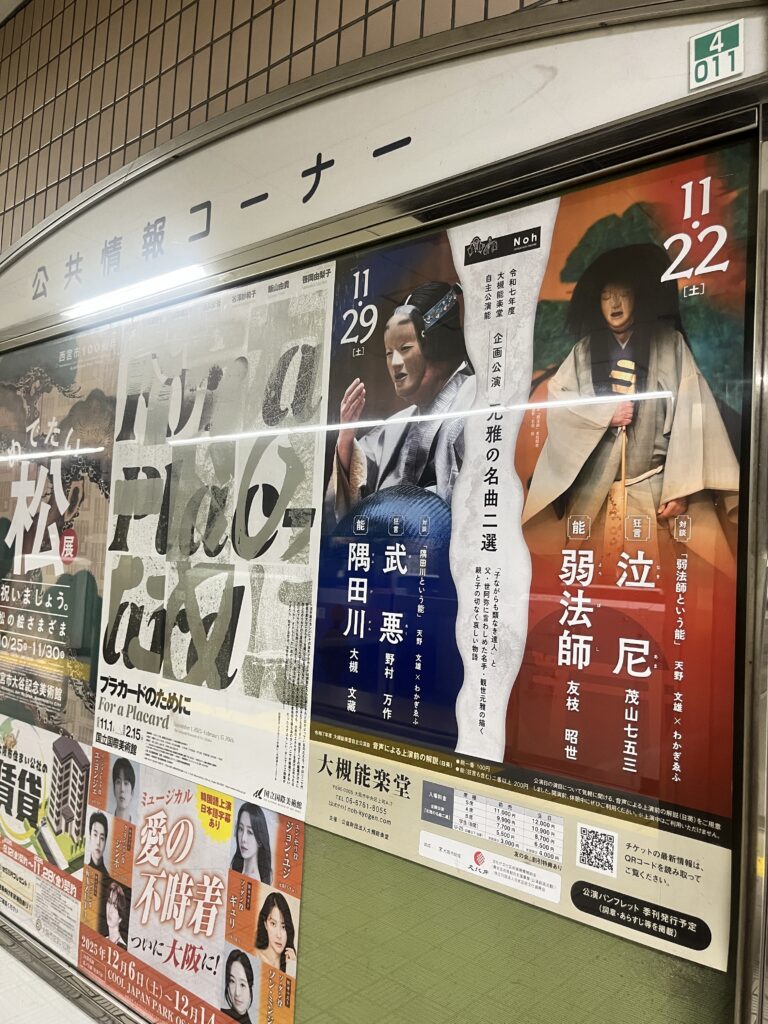 大阪メトロ公共情報コーナーに【元雅の名曲二選】のポスターが貼り出されました