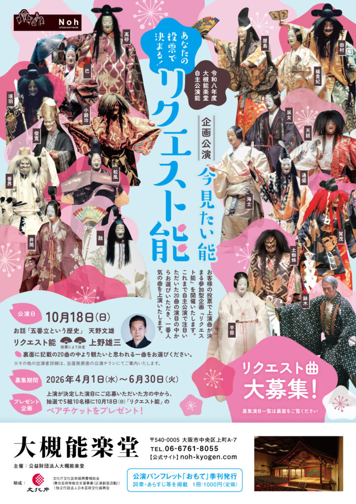 最も応募数の多かった演目を、2026年10月18日(日)「今見たい能 リクエスト能」にて上演いたします。