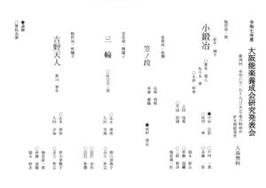 『こどもとたのしむ能狂言』 ①10:00 ②14:00~ | 16 | 17 | 18 | 19 令和七年度 大阪能楽養成会研究発表会