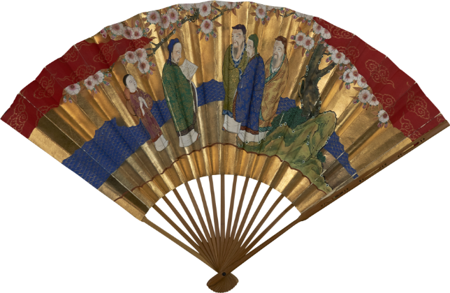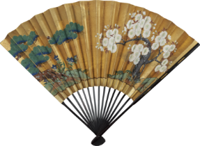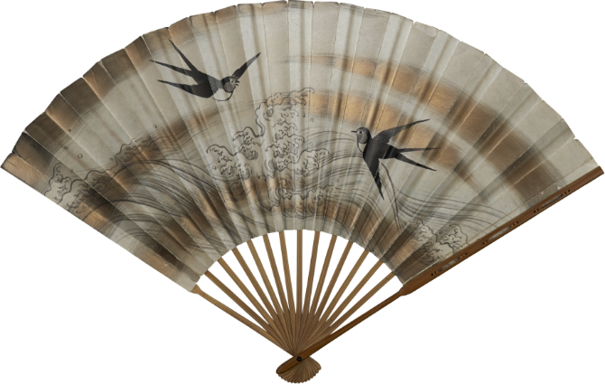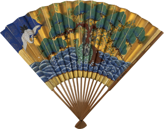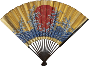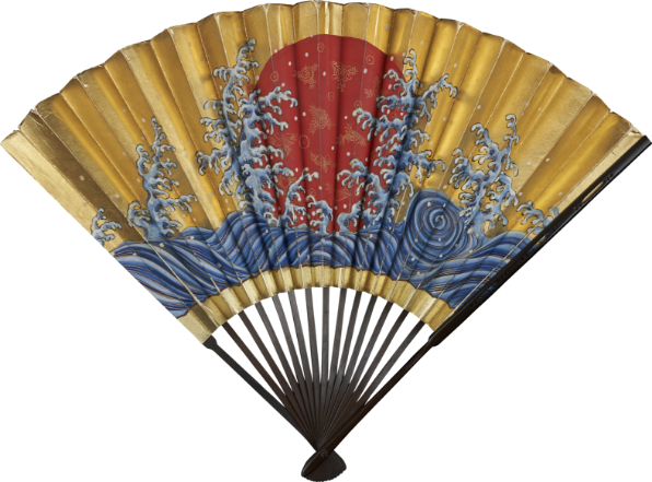 In the past, fans were an accessory of the aristocracy. In noh, the fan serves an important function as a tool for multiform expressive purposes. Not only is it used during dances, but it can also be employed to stand in for other things, such as a cup, a sword, a brush, or a poem card. At times, it signals the feelings of the character, while at other moments it evokes a natural phenomenon, like the wind or waves.