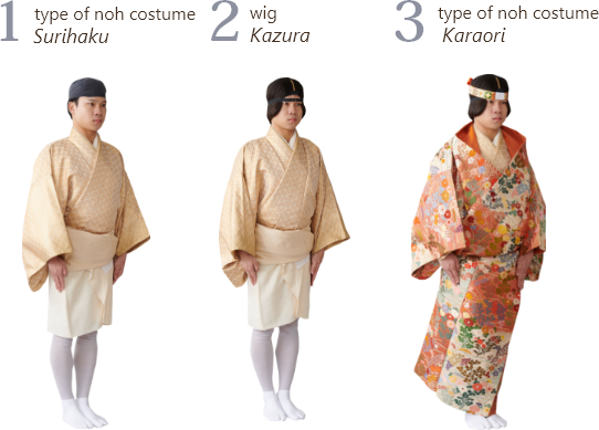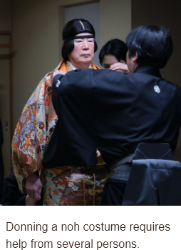 Noh costumes are called shozoku. The term, literally meaning “bundled garments,” denotes that several layers of garments are draped around the actor to form the costume.
