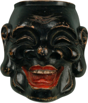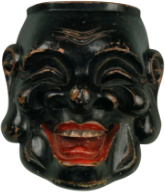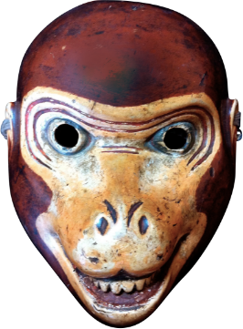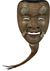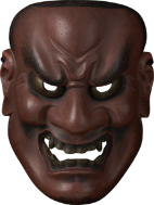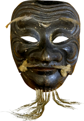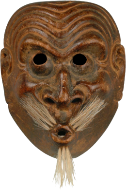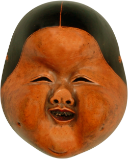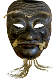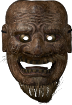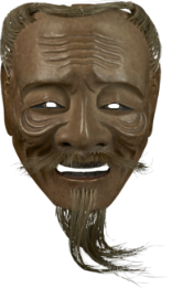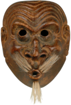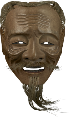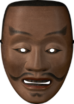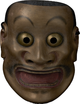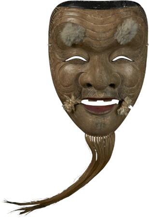 Masks made specially for kyogen reflect a fun-loving playfulness that flips the sophisticated noh upside-down.