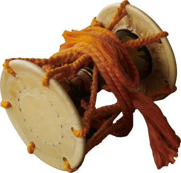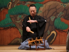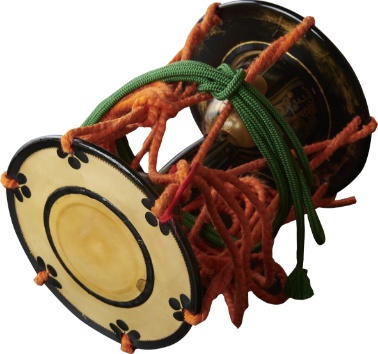The presence of three percussion instruments in the ensemble indicates the central role of rhythm in noh. Of particular importance is the timing, described as ma, or interval, between drum strokes. The drummers express the interval between one drum stroke and the next by capturing the beat in their bodies and communicating this to the actors and chorus through vocalizations called kakegoe.