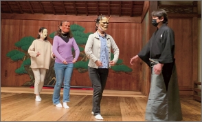 The program includes an introduction to Noh by a Noh actor, a tour of the Theatre including the backstage areas, and experiencing taking part in a performance on the stage.